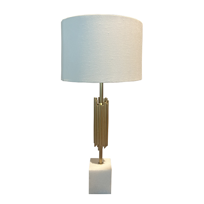 Настольная лампа Art Deco от американского премиального бренда Theodore Alexander. Изящная настольная лампа выполнена из нержавеющей стали и бронзы. Основание лампы - мрамор. Абажур ручной работы.