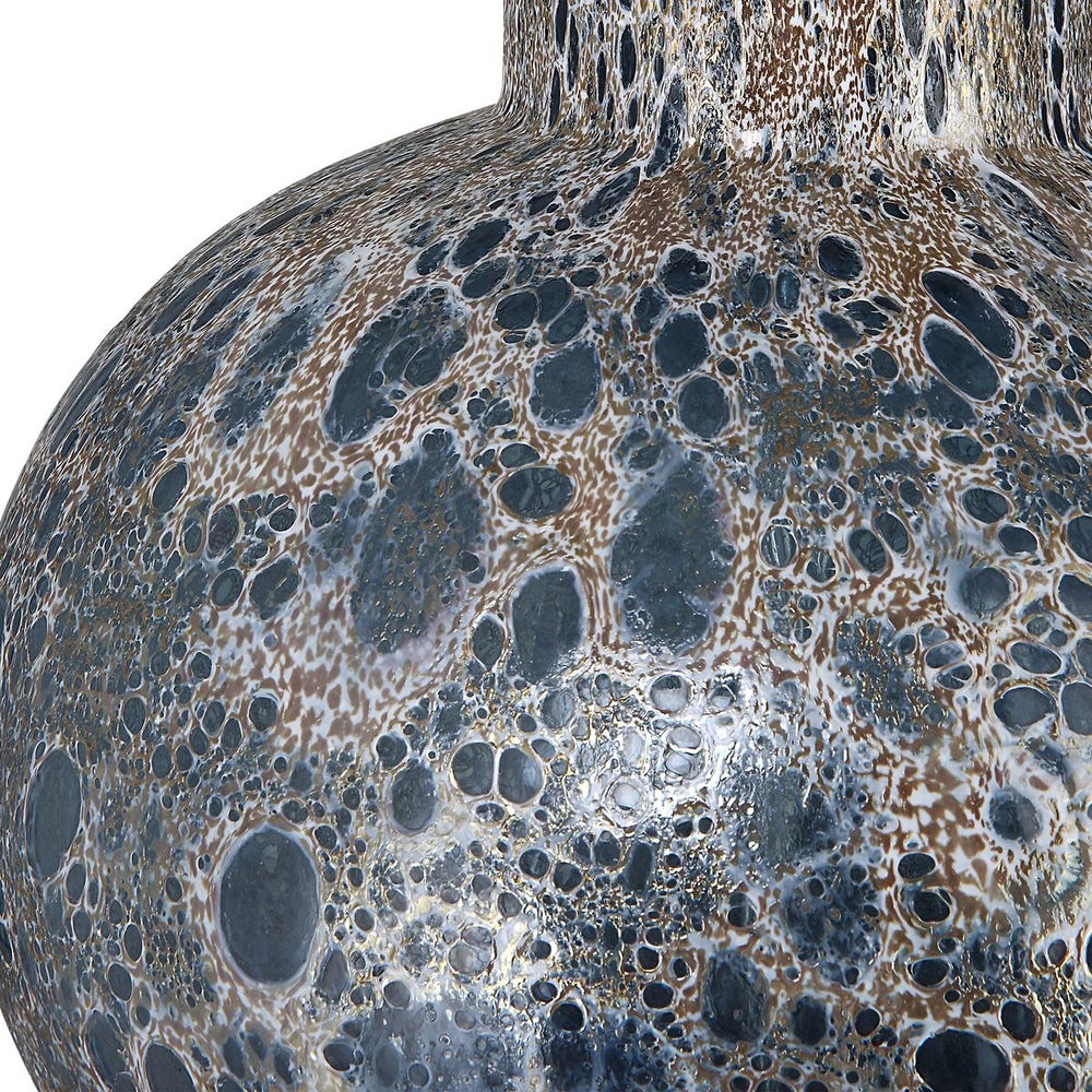 Настольная лампа Atmosphere от американского премиального бренда Uttermost. Корпус из дутого стекла напоминает атмосферу планеты, освещенную звездами, плавающими в галактике. Стекло цвета морской волны имеет матовую поверхность вулканического белого и золотого цвета и опирается на основание на ножках, отделанное латунью.