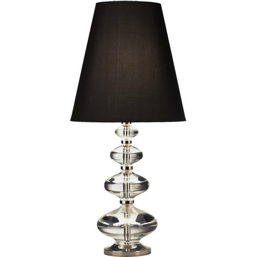 Настольная лампа CLARIDGE от премиального Американского бренда ROBERT ABBEY. Дизайнер Jonathan Adler. Основание подобно пирамиде из прозрачного крусталя. Металлические элементы окрашены в цвет полированного никеля. Абажур шелковый может быть двух цветов: серого или черного. Работает от 1 лампочки тип E26, 100 Ватт с цоколем E26. Выключатель диммер.