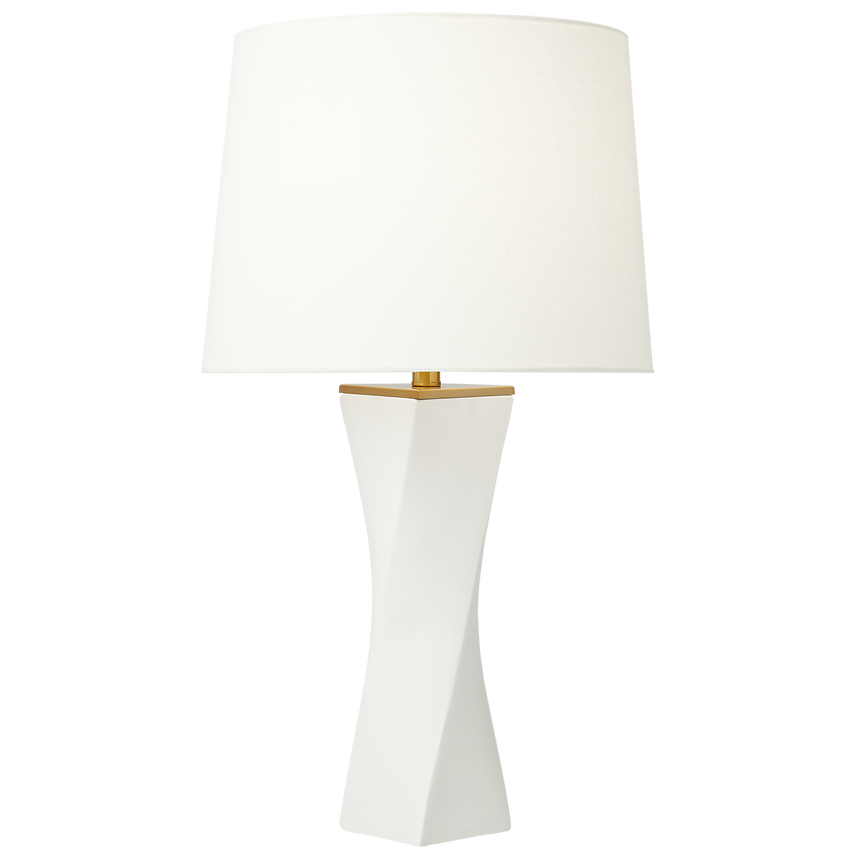 Настольная лампа Lagos от премиального американского бренда Generation Lighting изготавливается из керамики и металла в отделке состаренная латунь. Абажур выполняется из льна белого цвета. Основание из керамики покрывается лаком белого цвета. Светильник работает от лампочки максимальной мощностью 60 Вт. Абажур: 40 х 30 см.
