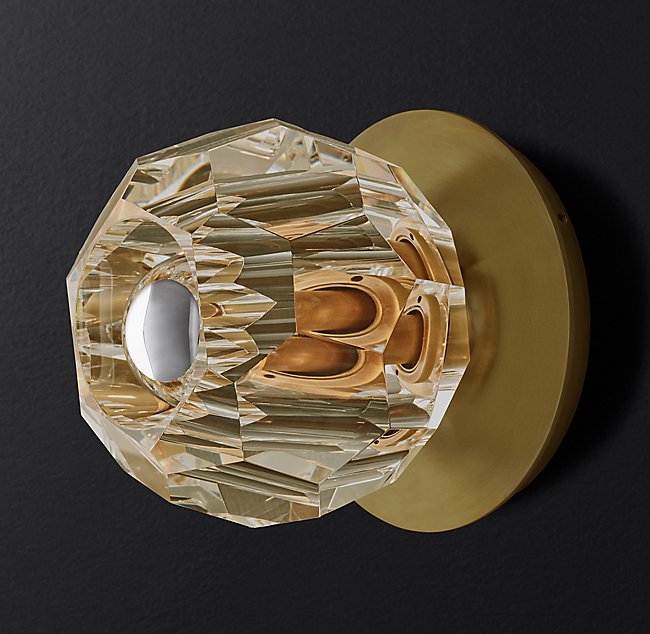 Бра BOULE DE CRISTAL PETITE SCONCE от премиального Американского бренда Restoration Hardware Плафон изготовлен из граненого стекла. Ручная работа. Варианты отделки: никель, бронза, латунь.