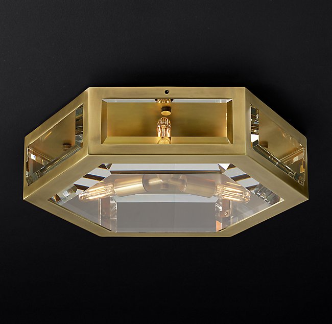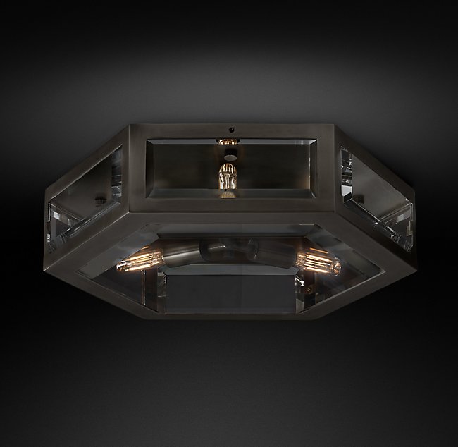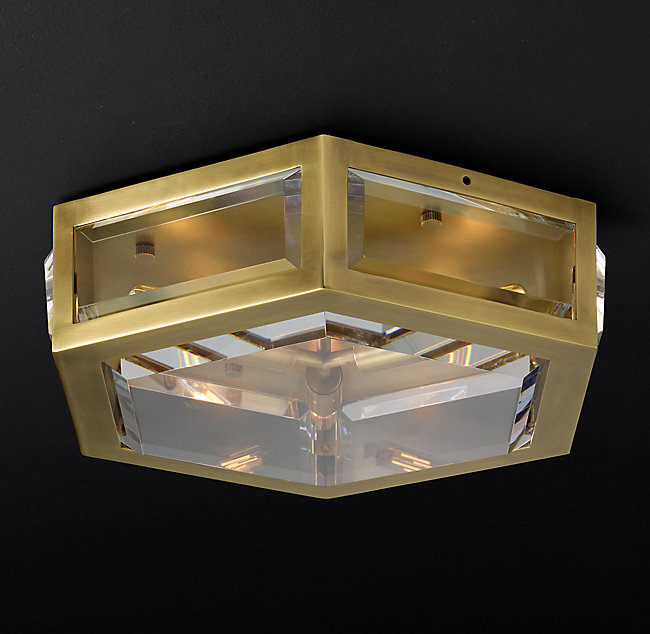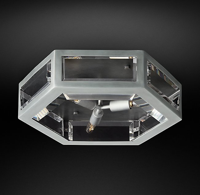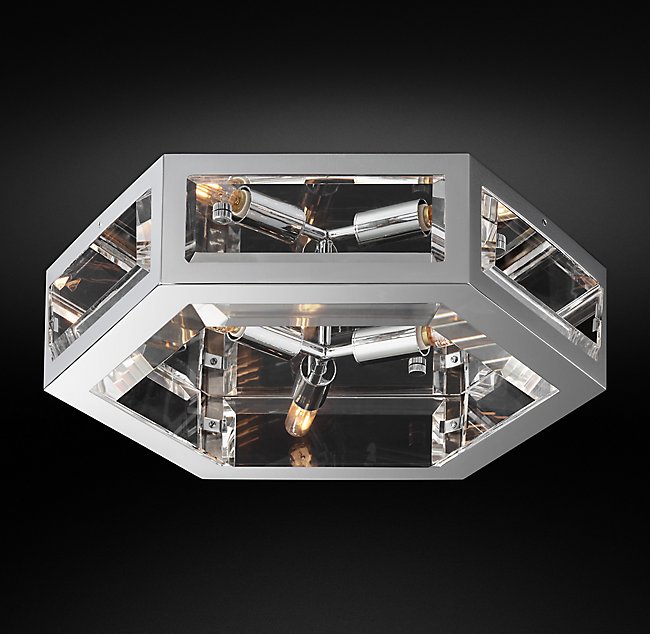 Люстра CHEVALIER FLUSHMOUNT от премиального Американского бренда Restoration Hardware Ручная работа. Корпус имеет форму призмы, на который прикреплены стеклянные пластины. Варианты отделки: никель, бронза, латунь, алюминий.