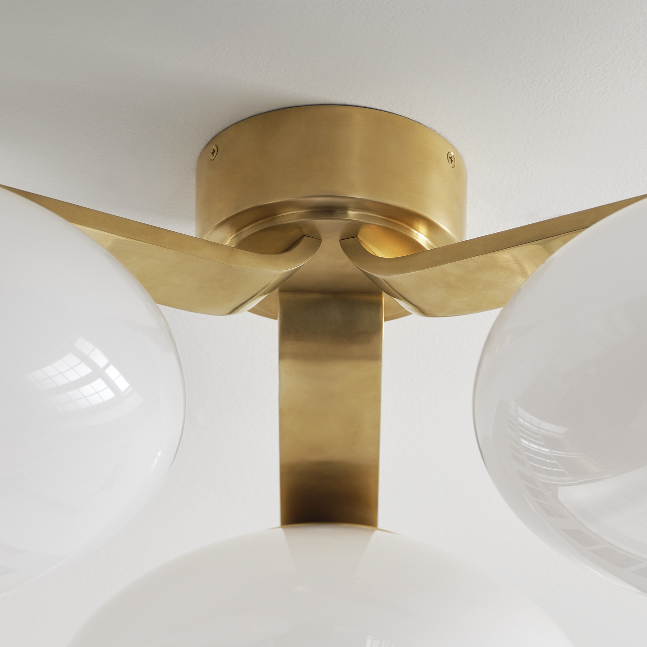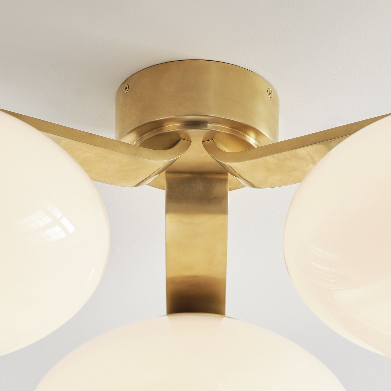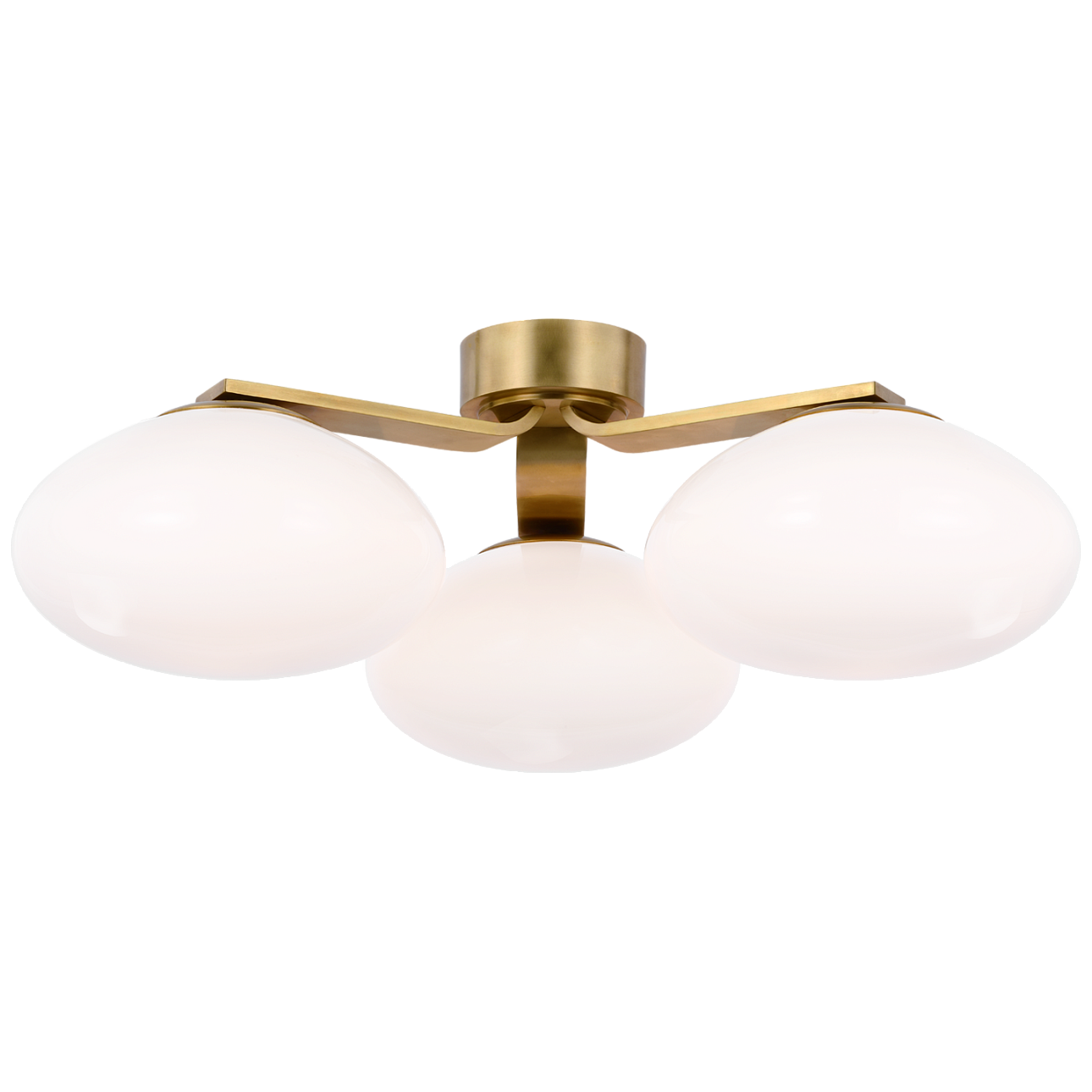 Потолочная люстра Marisol от премиального американского бренда Visual Comfort изготавливается из металла в латунной отделке и белого стекла. Работает от LED лампочек максимальной мощностью 18 Вт, 1500 Лм.