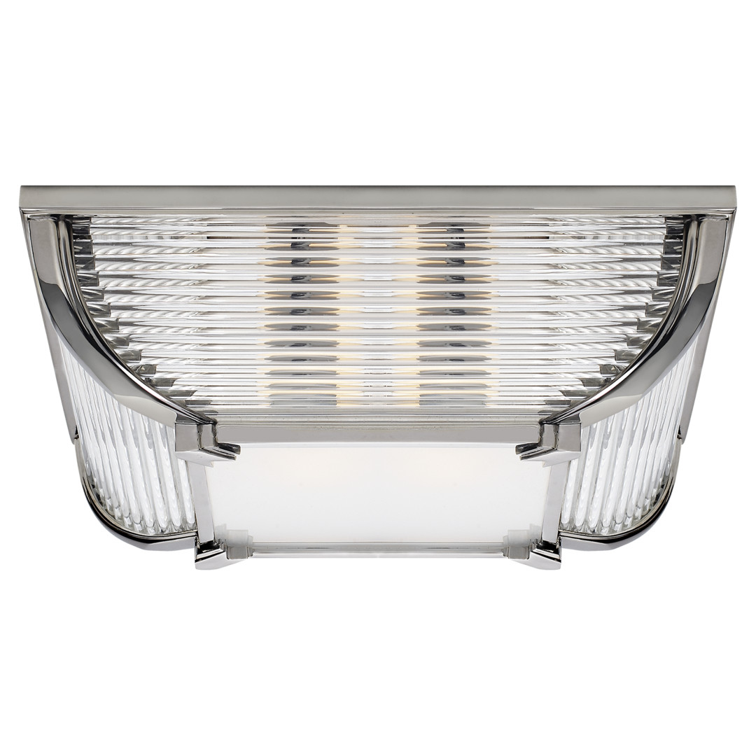 Потолочный светильник Perry от премиального американского бренда Ralph Lauren Home. Металлический корпус цвета полированного никеля со вставками из стекла. Работает от 2 лампочек максимальной мощностью 40 Ватт.